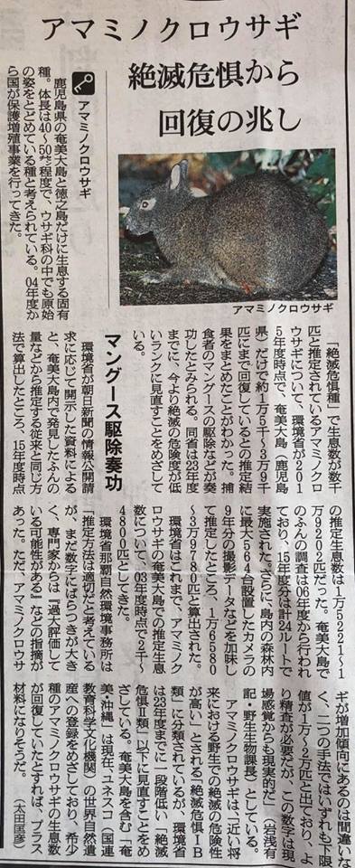 環境省はこれまでクロウサギの生息数2,000~4,800頭としてきましたが、朝日新聞の情報公開請求により2015年時点で推定生息数15,221~39,780頭であったことを認めました。