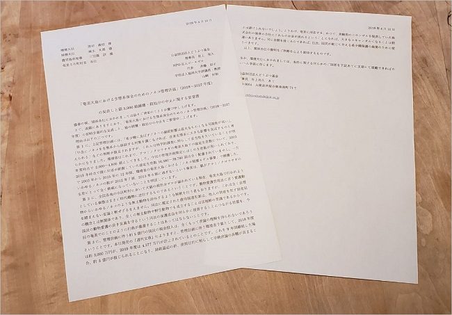 以上、関係各位の賢明なご判断を心より期待するものです。なお、環境大臣におかれましては、本件に関する何らかのご回答を下記あてに文章にて頂戴できればたいへん幸甚に存じます。