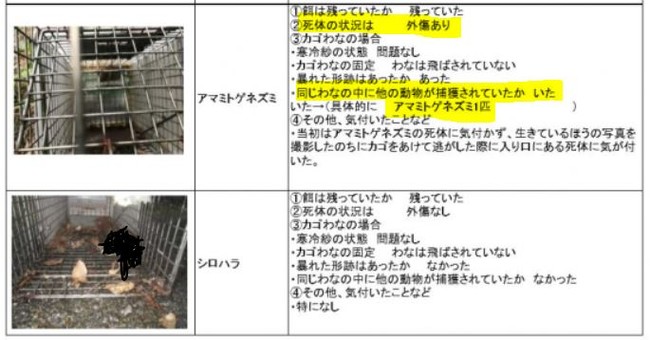 ※環境省に誤捕獲されて死亡した絶滅危惧種の報告書