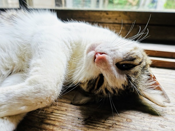 気持ちよさそうにまどろむ温泉の看板猫
