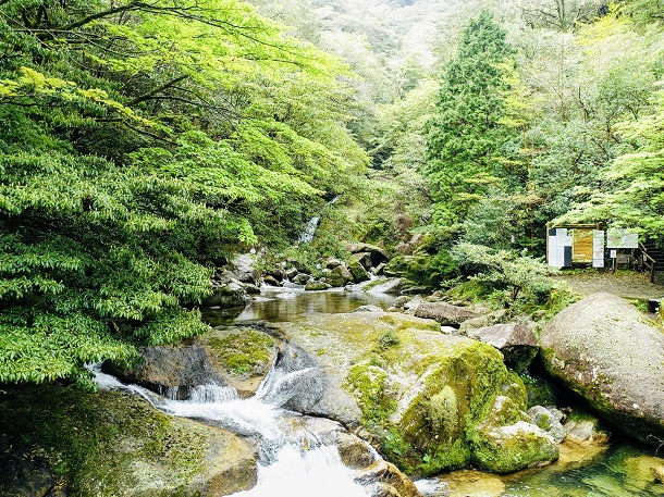 もののけ姫の舞台、苔の森として知られる白谷雲水峡や、