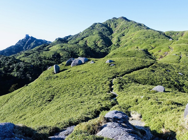 花崗岩と笹藪が広がる別世界を堪能します。宮之浦岳山頂も独り占め。