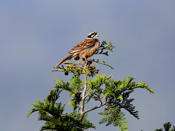 あ、木のてっぺんで体膨らませて鳴く茶色い鳥!ちょっとだけ見つけ方の