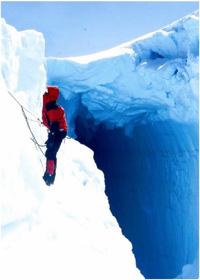 これるようトレーニングを重ねます。その際、クレバスへ意図的に