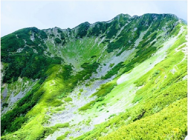 南アルプス仙丈ヶ岳にて。このカールは、11万~1万年前の最終氷河期の時代の氷河の爪痕。