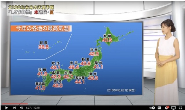 2100年の未来天気予報(キャプチャは、環境省作成COOL CHOICEの動画より)