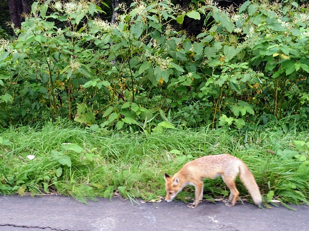 車中からキタキツネを見かけると、北海道に来たことを感じる