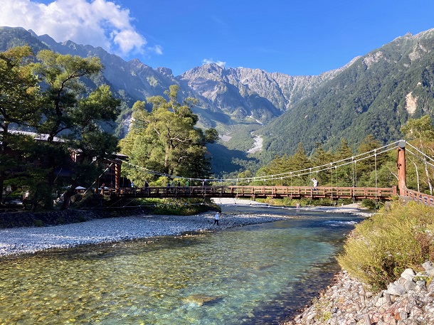 河童橋近辺の、変わらず綺麗な上高地の景色。