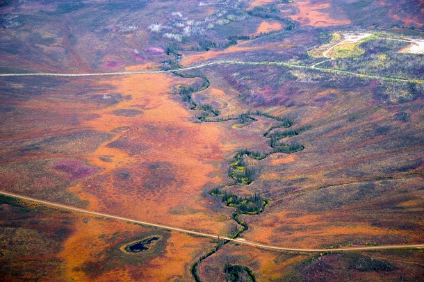 ダルトンハイウェイの直線、その二つの線をつなぐかのような、