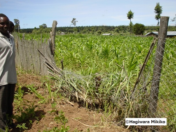 ケニアでゾウの入り口を見せる農家