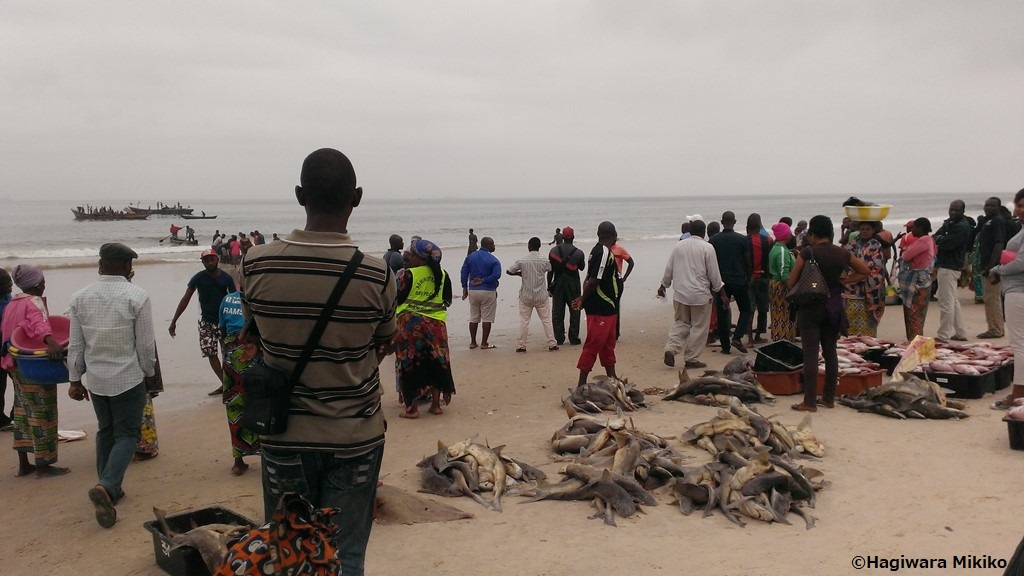 コンゴの沿岸の話に戻ります。サメ以外の魚については、コンサルタントの専門家の方によると、時々1メートル以上あるような大きな魚も獲れているということは、資源はまだ十分あるようだということでした。というのも先に書きましたベナン人の漁師たちは、ベナンの海で資源を枯渇させてしまい、小さい魚しか獲れなくなったため、コンゴに移住してきたそうです。