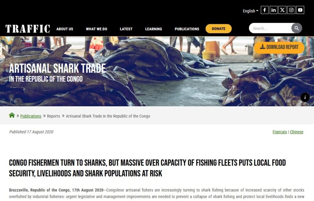 トラフィックのレポート:「コンゴの漁師はサメ漁に力を入れ始めたが、非常に多すぎる漁業船のせいで、地元の食糧、生活とサメが危機にさらされている」