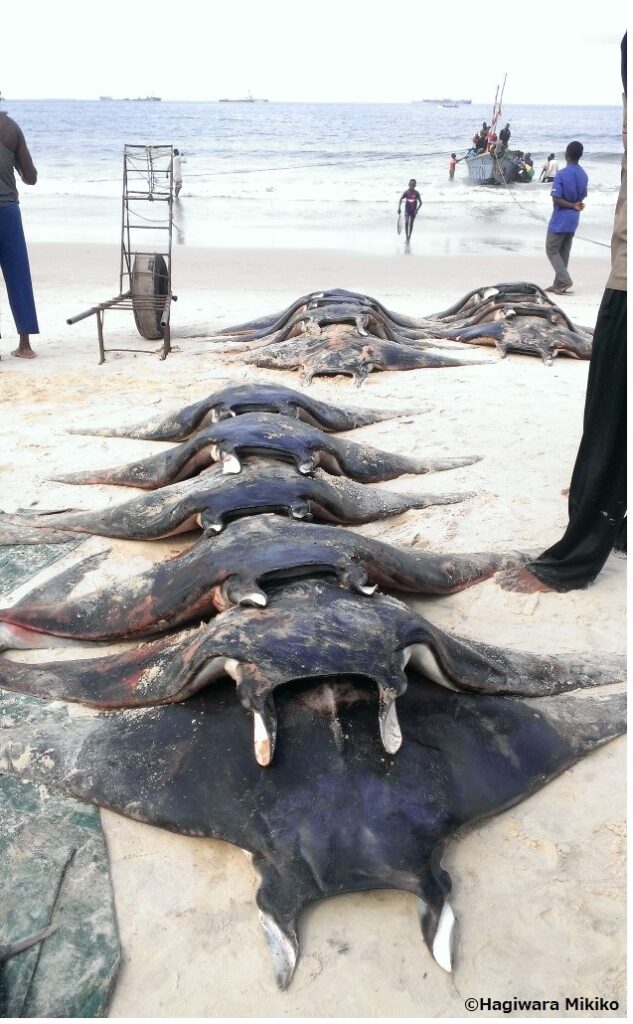 マンタも絶滅の危機に瀕していますが、漁師たちは知らずに捕ってしまうので、普及教育が必要です(2018年撮影)