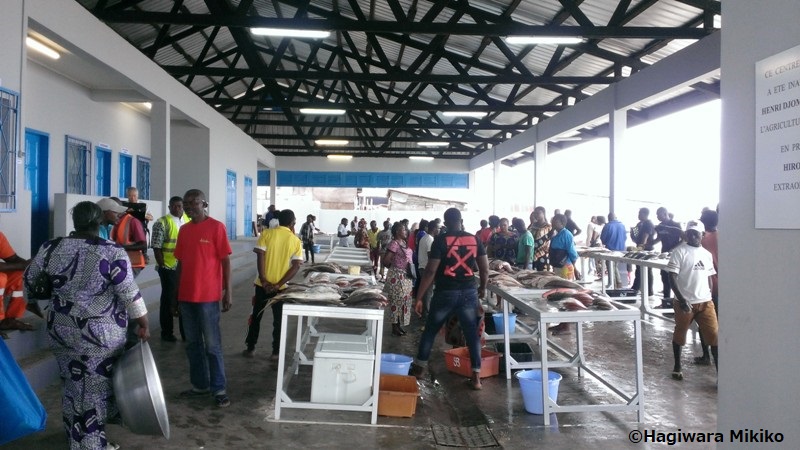 2012年から6年間、JICAの「ポワント・ノワールの水産物バリューチェーン改善プロジェクト」が行われました。これは漁師から仲買人、小売り、消費者までのすべての段階で、流通する魚の価値を高めることを目指すプロジェクトです。その中には鮮度のいい魚を取引するための漁業センターの建設も入っていました。