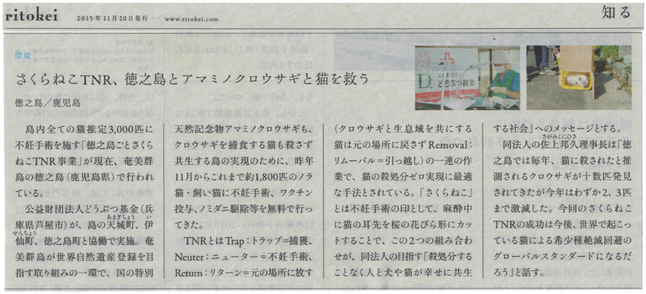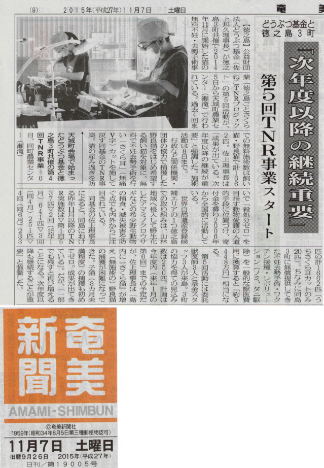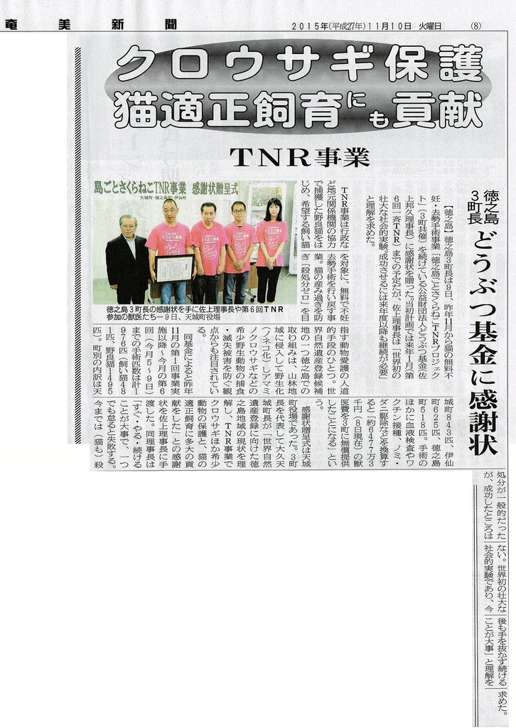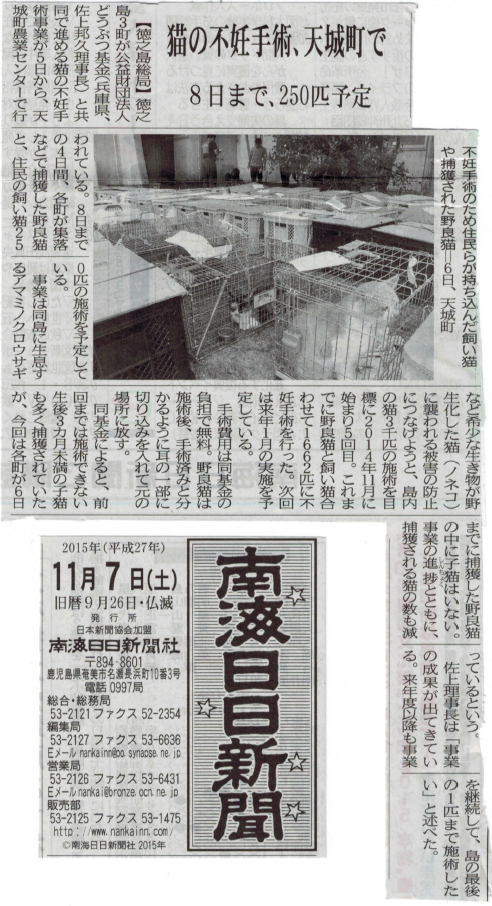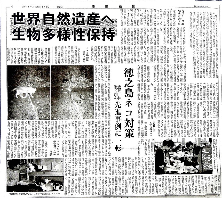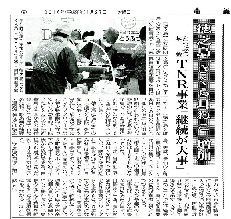 徳之島ごとさくらねこTNR新聞記事