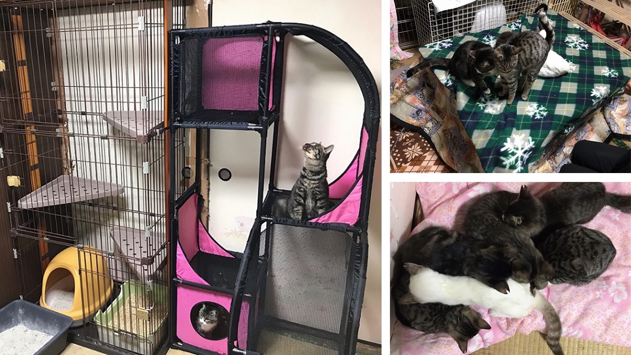 - 7~8年前からは子猫が増えないよう不妊去勢手術を行うようになり、3年前からは管理している猫の健康や生活環境を損なうことがないよう全て屋内で飼養するように改めた。