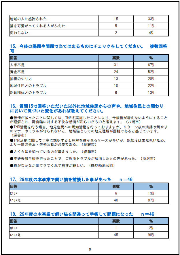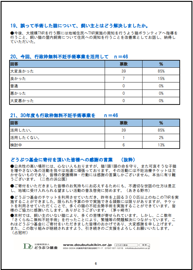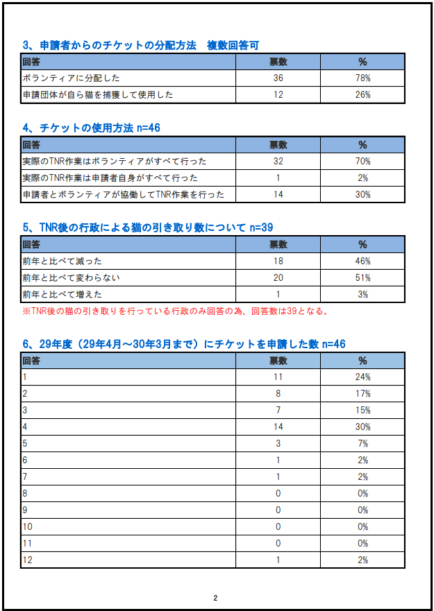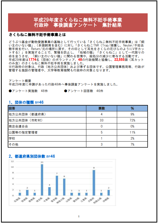2017「さくらねこ無料不妊手術事業」行政枠アンケート結果