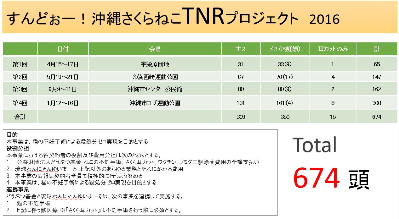 2012~18沖縄さくらねこ無料不妊手術実績更新しました