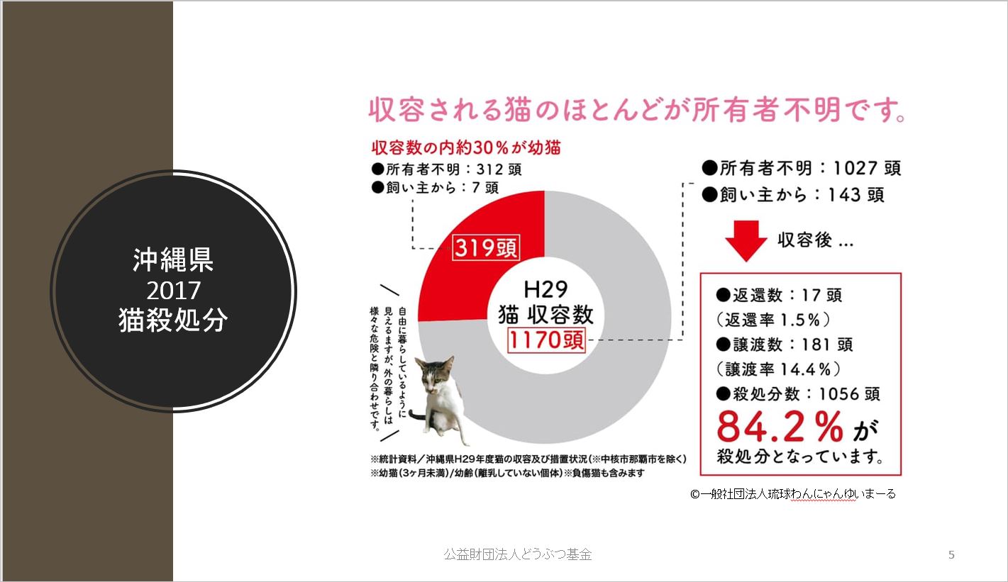 2011年、沖縄は猫の殺処分が多い県で最悪の現状を何とかしたいという地元愛護団体、琉球わんにゃんゆいまーるからの相談を受け以下のアドバイスをしました。