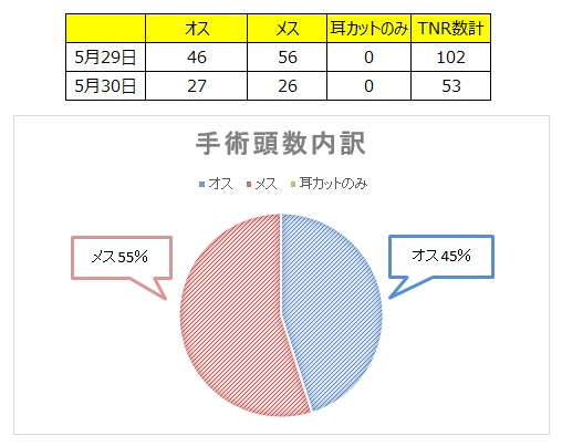 5月29日、30日三重県動物愛護センター(あすまいる)で155頭の不妊手術が行われました。