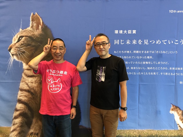 理事長と「さくらねこ」のポーズ。