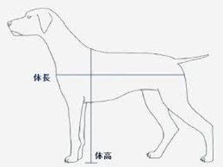 犬の「体高」は、犬を立たせた状態で測る。 犬の立つ地面から垂直に測定し、首の付け根の骨(背中の一番高い部分) までの高さを「体高」と定めている。 頭のてっぺんまでではない。