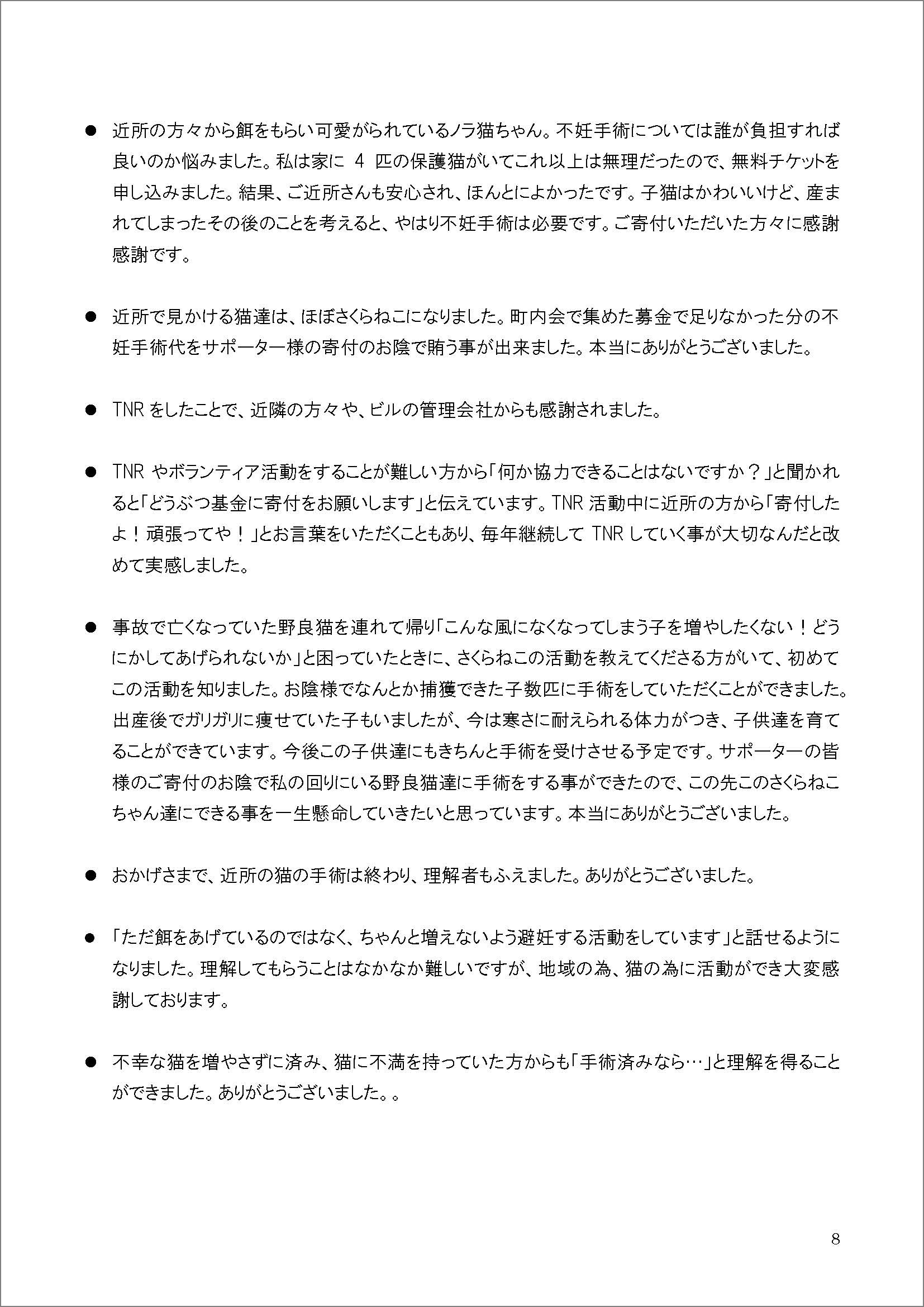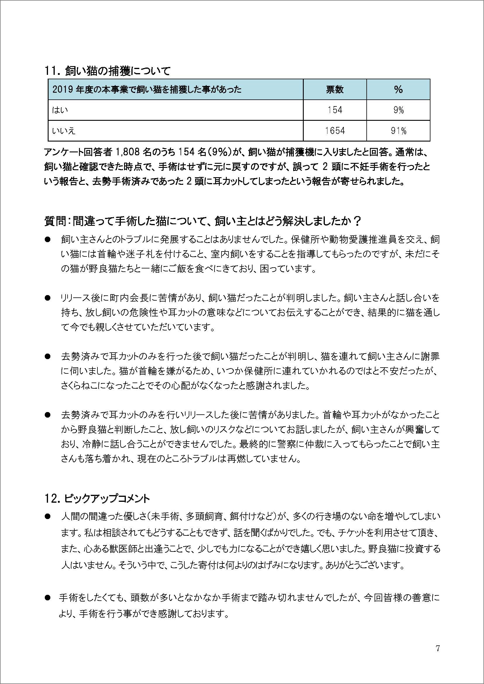 2019「さくらねこ無料不妊手術事業」一般枠アンケート結果