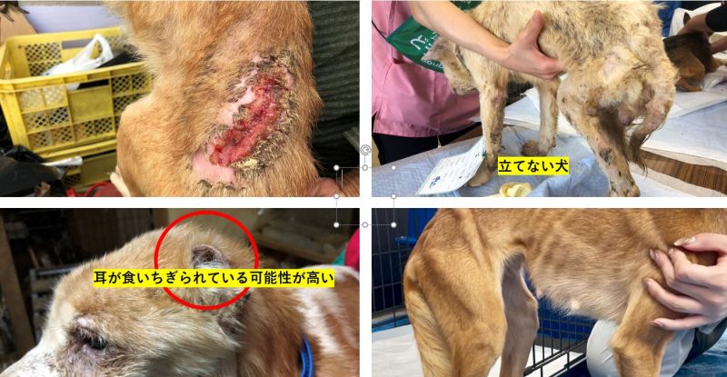 - 10頭の妊娠犬の多くは老犬や激やせの状態であり、獣医師によって、これまで何度も妊娠を繰り返した形跡が確認された。同時に、出産及び出産後の仔犬の世話や授乳は、衰弱を進めて死亡する可能性が高いと診断された。