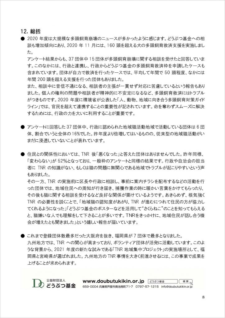 2020「さくらねこ無料不妊手術事業」団体枠アンケート結果