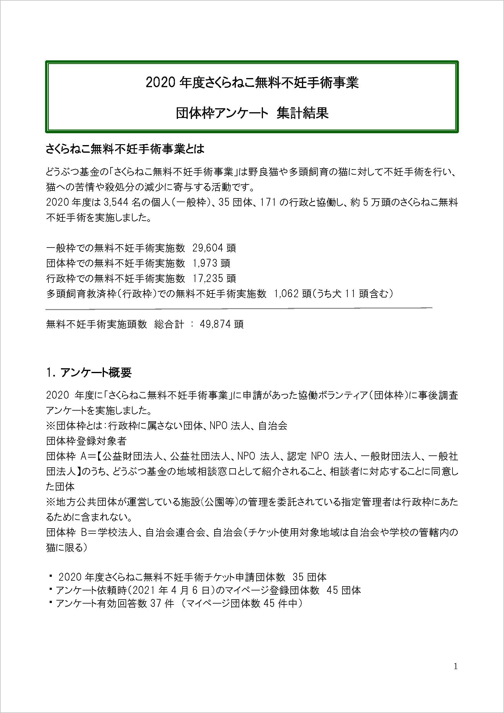 2020「さくらねこ無料不妊手術事業」団体枠アンケート結果