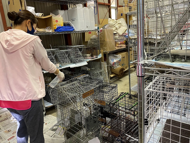 ケージの中にさくらねこがいます。リターン前かな?