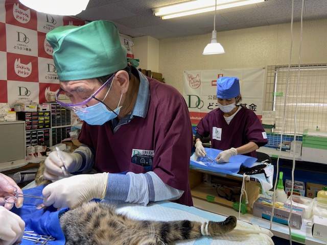 5名の獣医師が参加し、大阪ねこの会のご協力のもと実施いたしました。