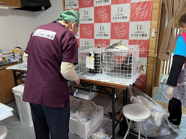 4名の獣医師が参加し、宮崎ねこの会のご協力のもと実施いたしました。