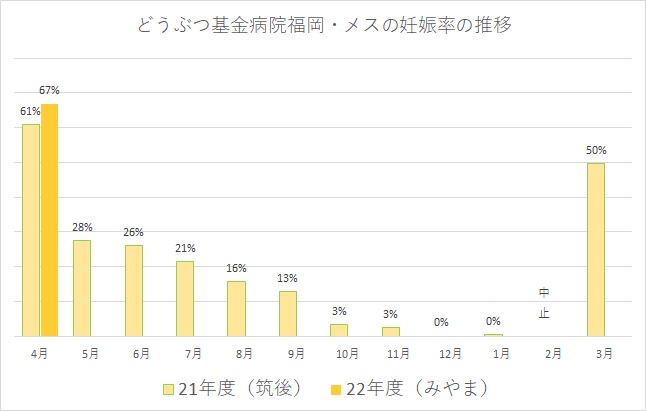 例年妊娠率は5月から低くなり始めて10月頃から妊娠はほとんどいなくなります。