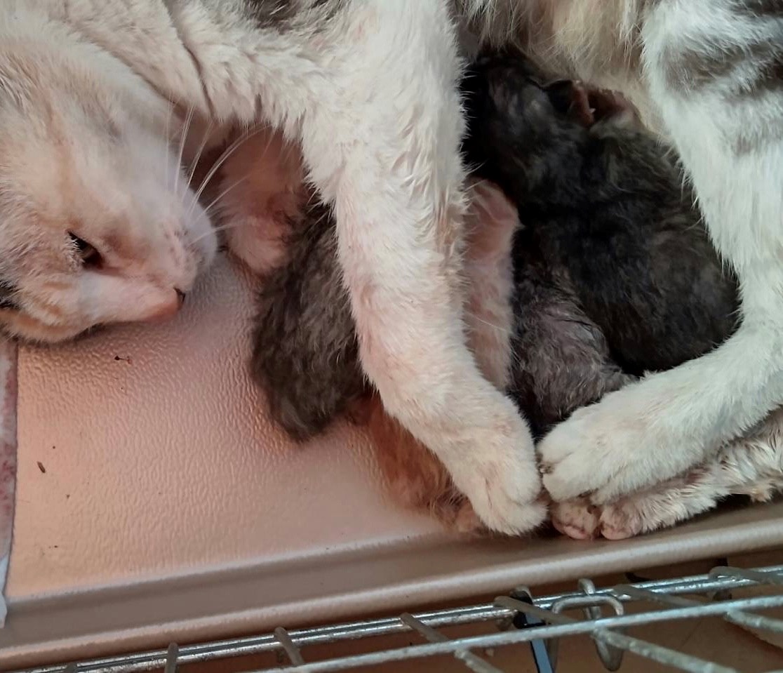 待機中に出産し、4頭の仔猫が生まれました。