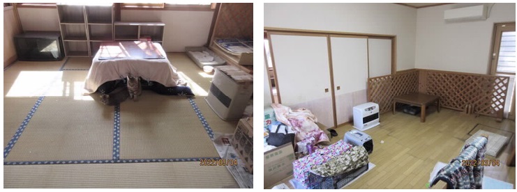 - 部屋にある物を片付けて清掃を行い、不要な物を廃棄するなどして、家人の持ち物や缶詰・フードを整理した。埃を取り除いて拭き掃除を行ったことで臭いも軽減された。
