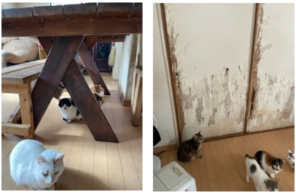2. 最初に保護した猫に不妊手術をせず、その後に増えた猫に対しても不妊手術をしなかったため、妊娠出産を繰り返し、約4年で多頭飼育崩壊状態となった。
