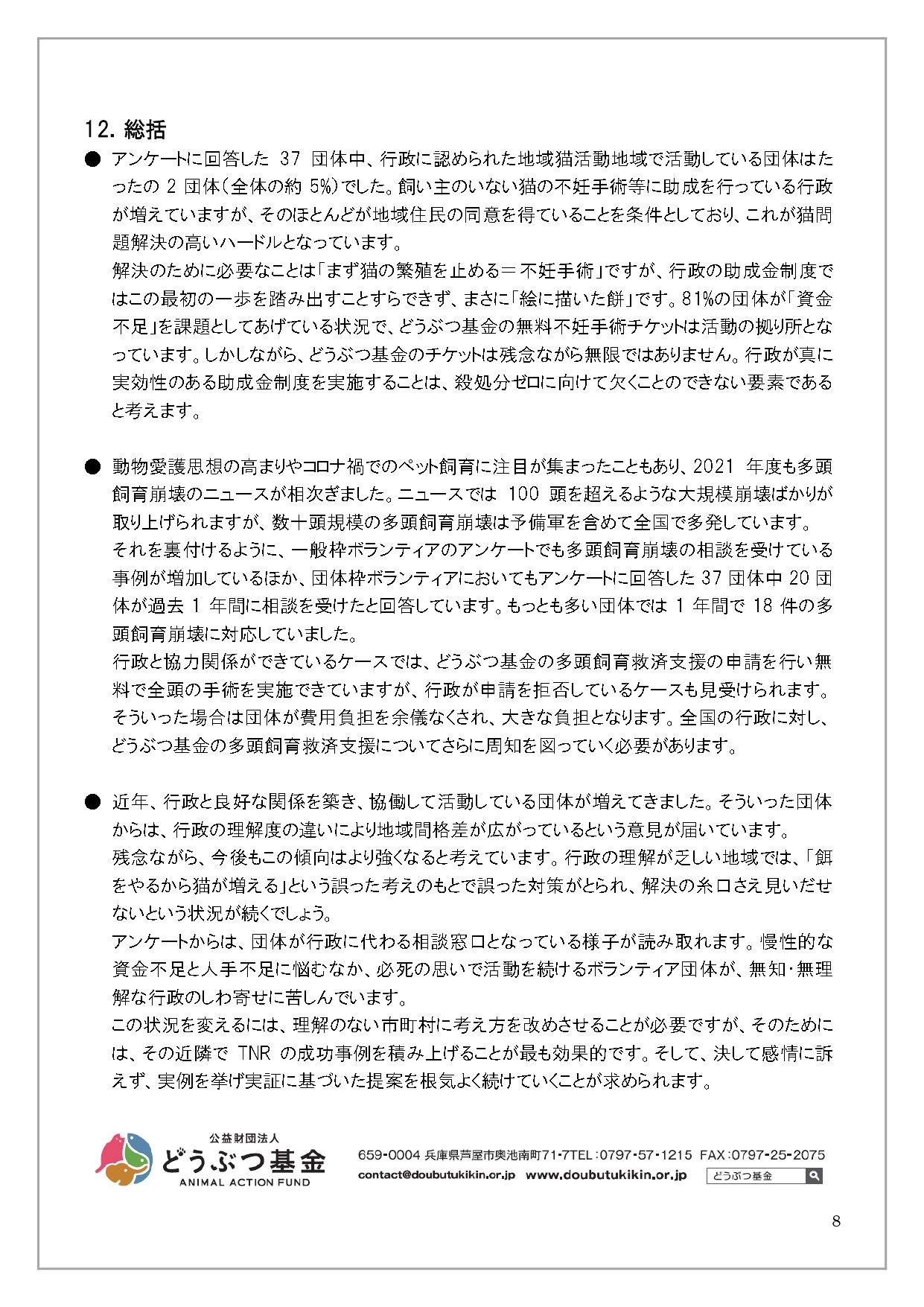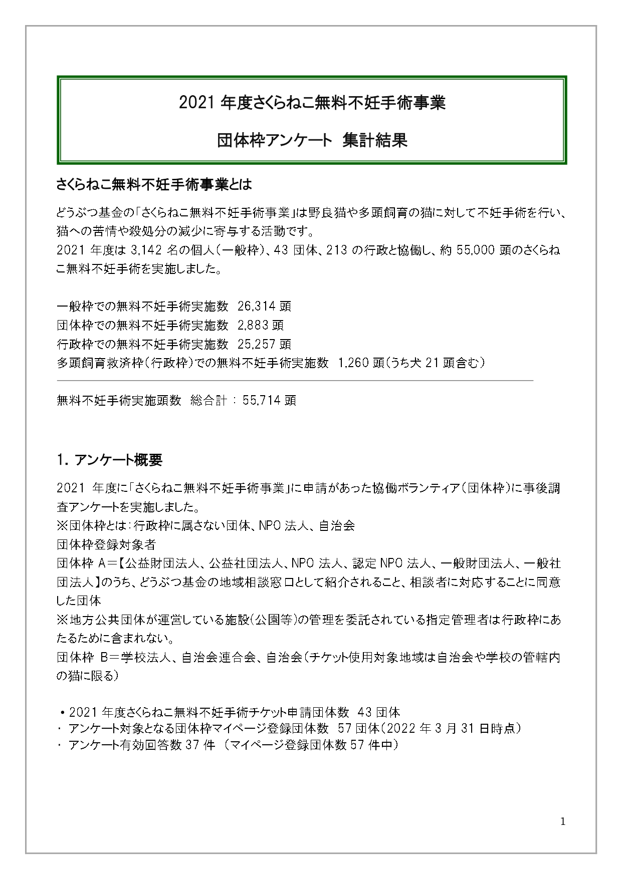 2021「さくらねこ無料不妊手術事業」団体枠アンケート結果