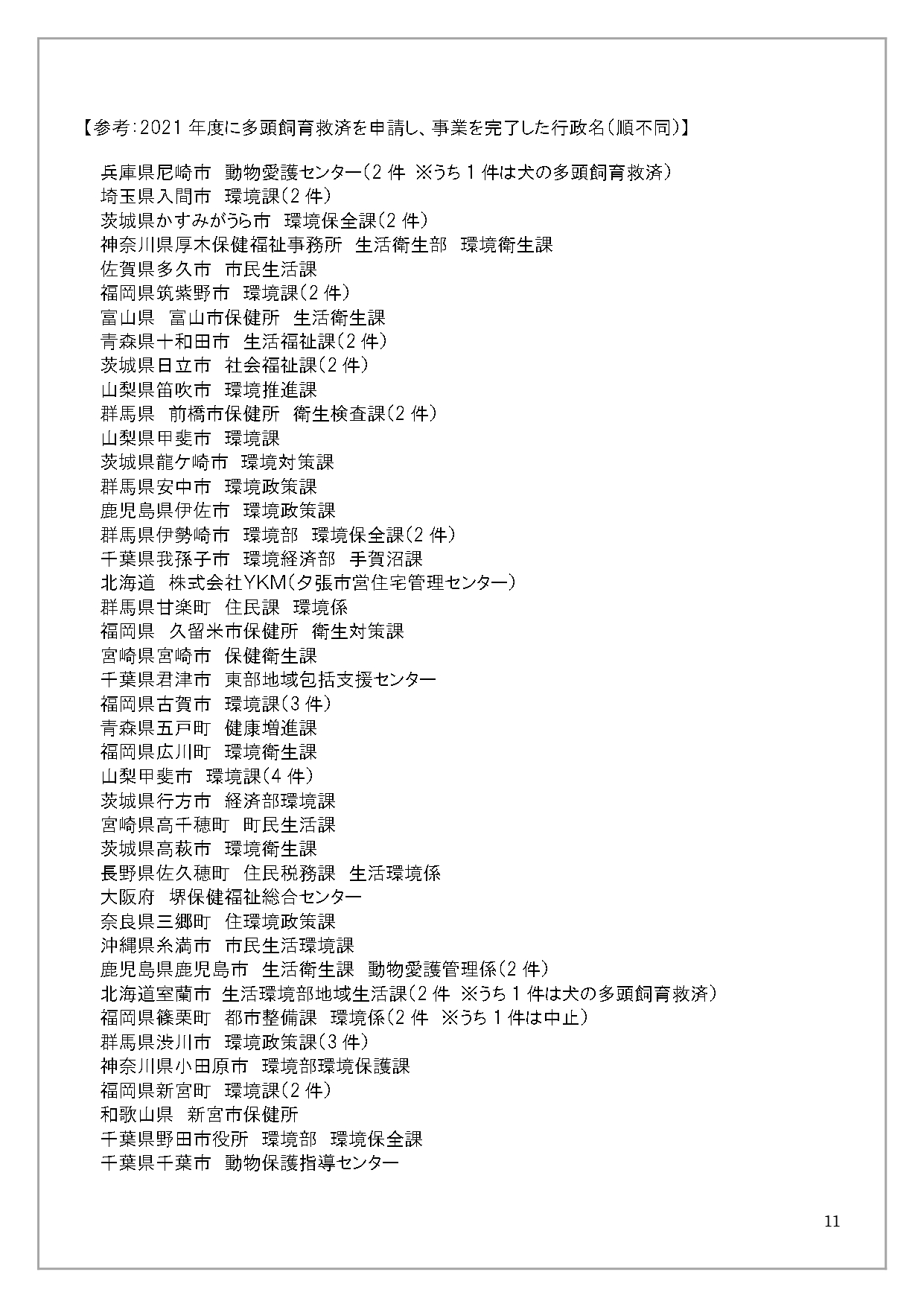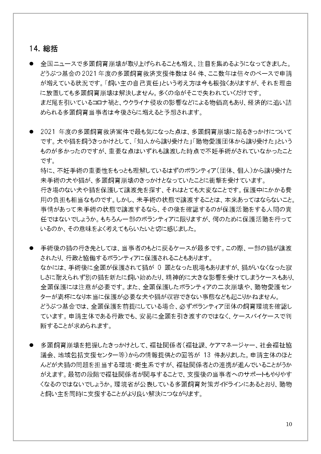 2021「さくらねこ無料不妊手術事業」多頭飼育救済枠アンケート結果