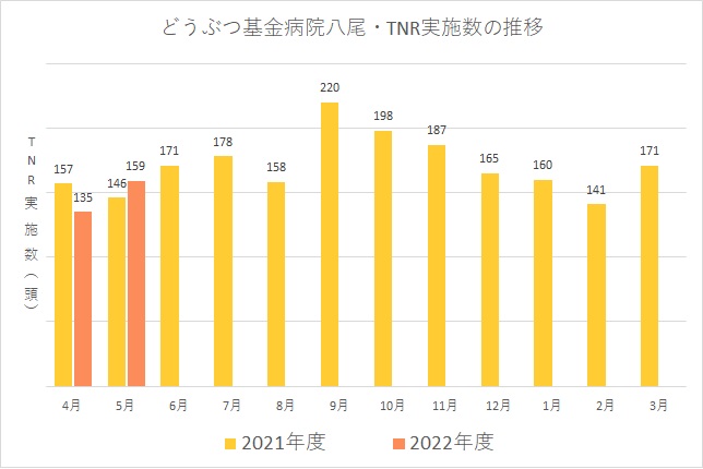 4月はお天気に恵まれなかったため、TNR実施数が大きく下がりましたが、