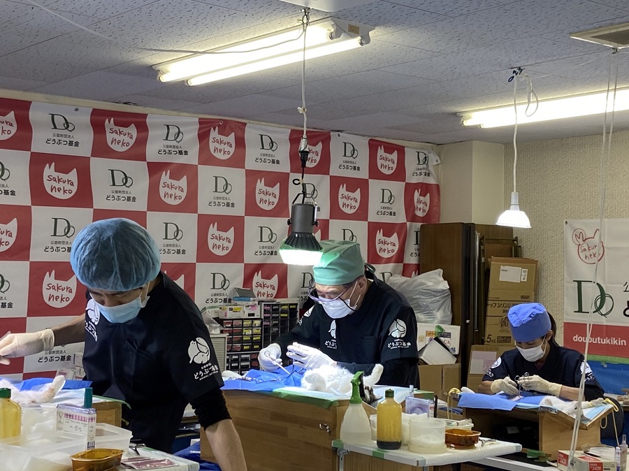 4名の獣医師が参加し、大阪ねこの会のご協力のもと実施いたしました。