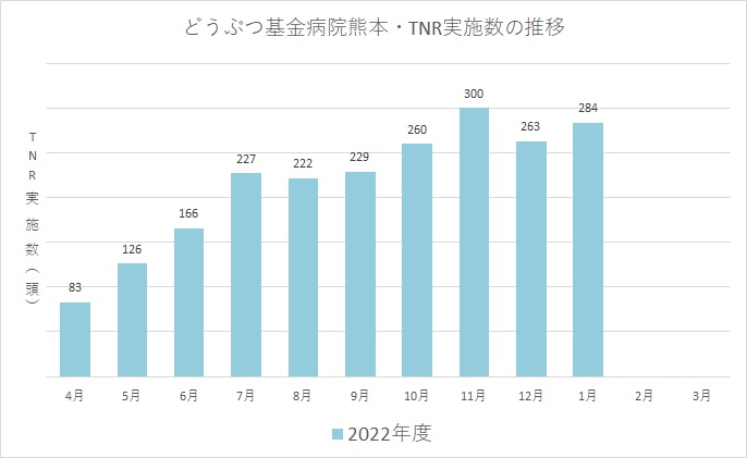 1月のTNRでは、284頭の手術を行うことができました。