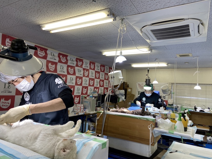4名の獣医師が参加し、大阪ねこの会のご協力のもと実施いたしました。