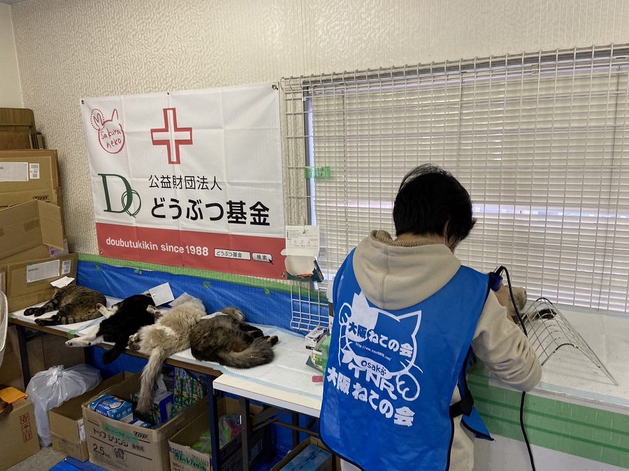 4名の獣医師が参加し、大阪ねこの会のご協力のもと実施いたしました。