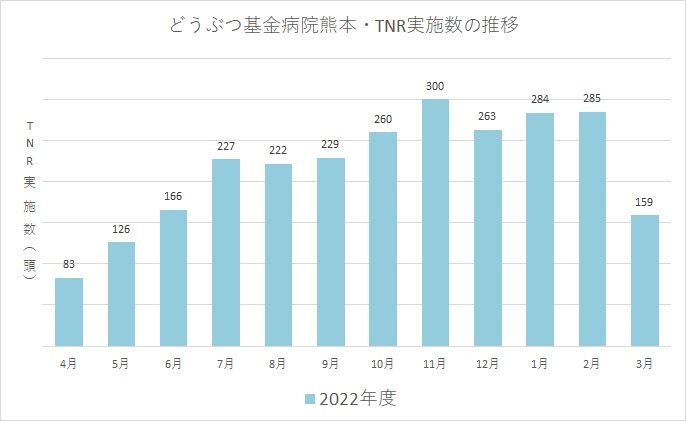 3月のTNRでは、159頭の手術を行うことができました。