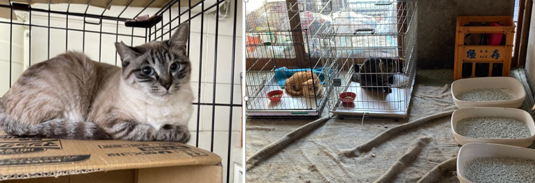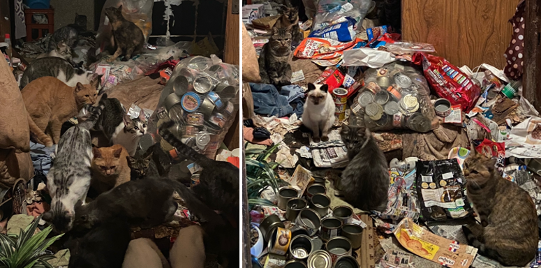 支援後の写真を見ると、飼育環境に改善が見られます。町や保健所、ボランティアのご尽力もあって14頭が新しい家族を見つけ、当事者宅には9頭が残るのみとなりました。頭数が大きく減ったことで猫のストレスも軽減されています。