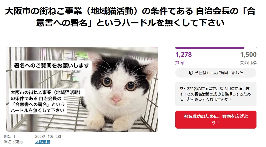 「大阪市の街ねこ事業(地域猫活動)の条件である自治会長の