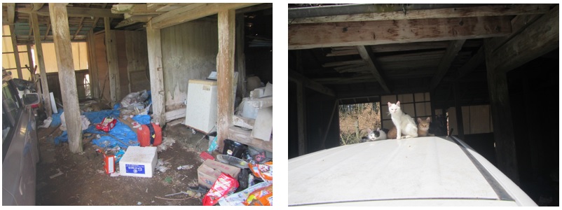 - 以前から放置されているゴミ等はそこまで減っていないが、猫用のトイレや餌場を設けて適正飼養に向けての努力がみられ、トイレや餌場の設置により手術前からすると改善されてきている。