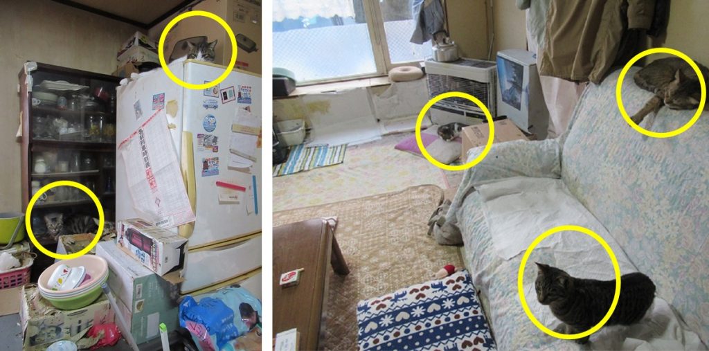 - 猫が増え始めた頃には当事者が病気で入院したり(現在は通院できるまで回復)、当事者の母が年金等を使い果たすなど(のちに認知症と判明)、金銭的に余裕がなく不妊手術を行うことが困難な状況であった。