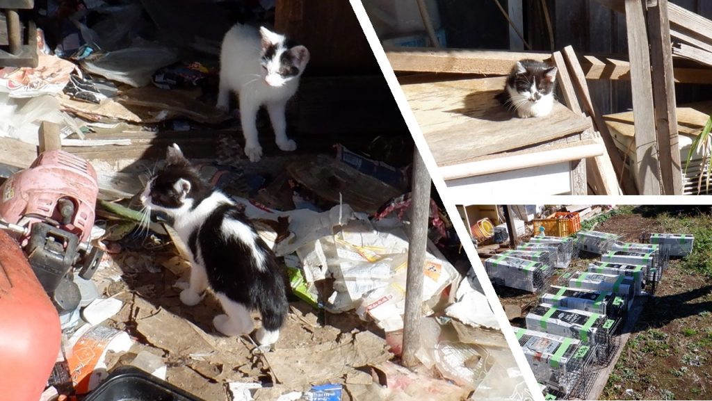 11月22日の午前中からボランティアさんが捕獲を始め、一度で捕獲出来なかった猫を時間を置いて再度捕獲し、市環境保全課で病院へ運んでくださるボランティアさん宅へ運びました。